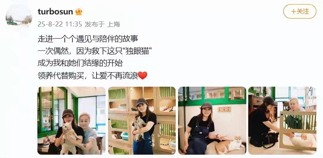 8 月 25 日凌晨,一条孙俪日常微博被顶上热搜:她晒出刚领养的独眼流浪猫“小黄豆”,配文只有 7 个字——“领养代替购买”。配图里,她用婴儿湿巾一点点擦猫爪,评论区瞬间 30 万+点赞。网友这才发现,这不是她第一次“偷偷”做好事: